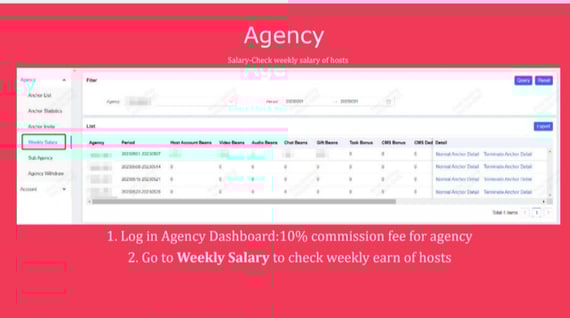 The income of anchor will be transferred to musee agency account at 0:00 on Monday,and the agency can withdraw cash uniformly